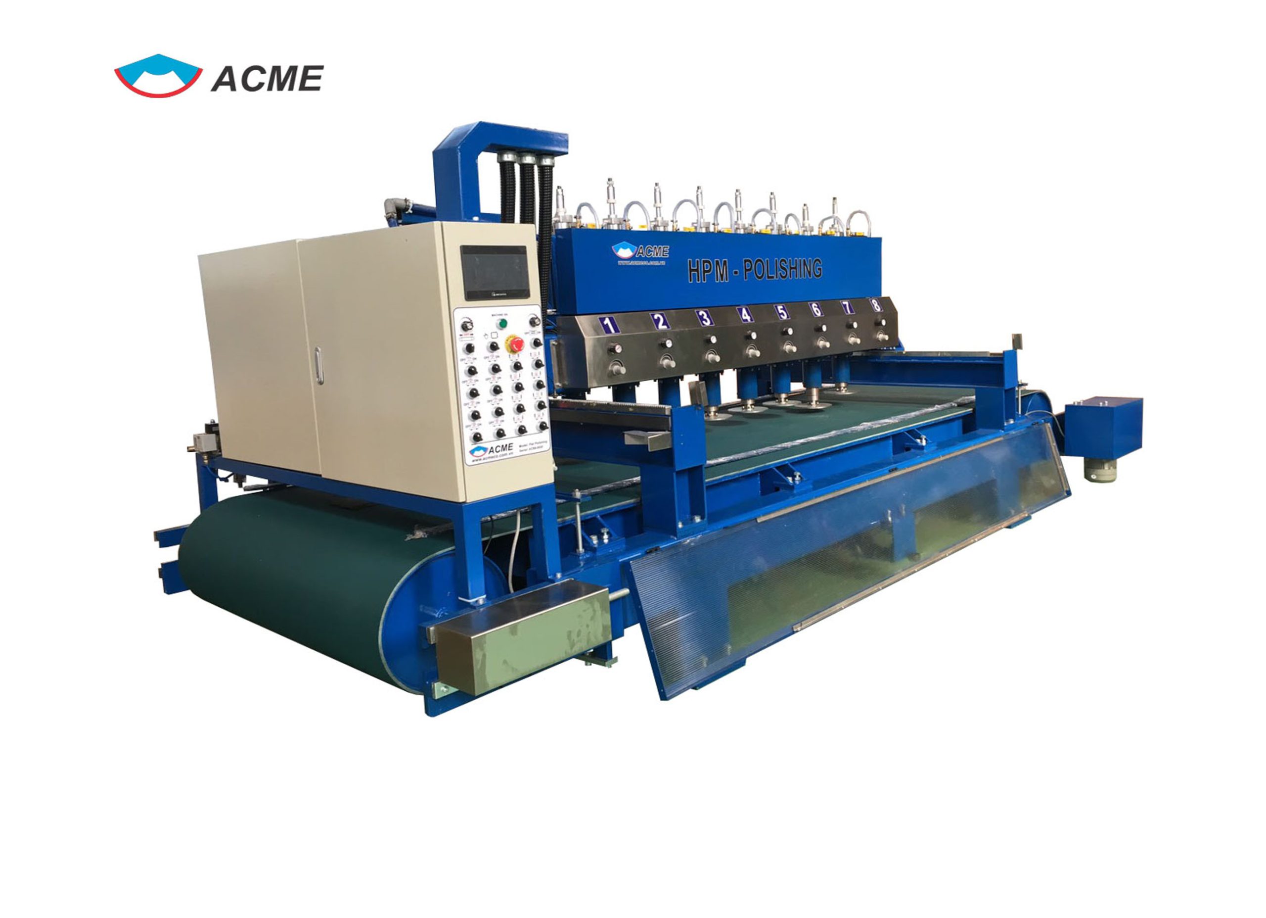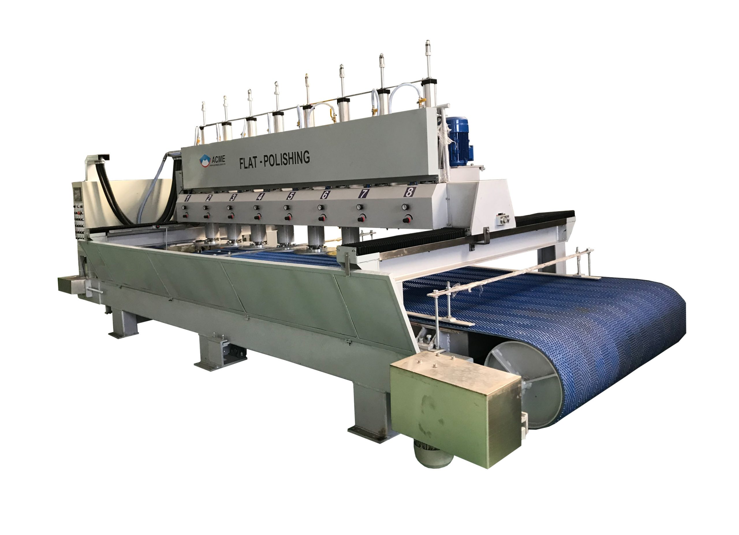 Gồm 8 đầu đánh bóng lên – xuống bằng khí nén, có thể điều chỉnh được áp suất khí nén. Dùng để đánh bóng bề mặt các loại đá: